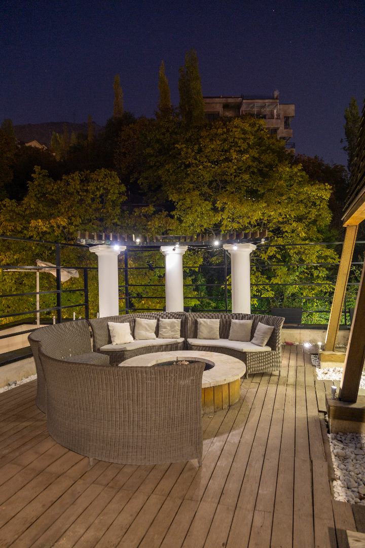 این باغ ویلای لوکس و مدرن در 4طبقه بناشده است. 7 اتاق خواب مستر ،استخر سونا و جکوزی و همچنین روفگاردن مشجر قابل چیدمان از امتیازات ویژه ی این باغ عمارت میباشد علاوه بر اینها امکان اقامت یا ادامه مراسم تا صبح فردا را نیز دارد.