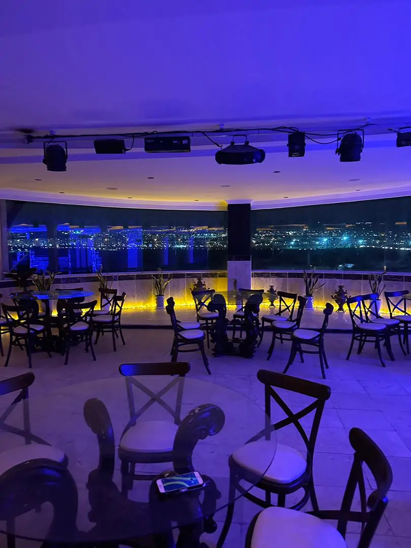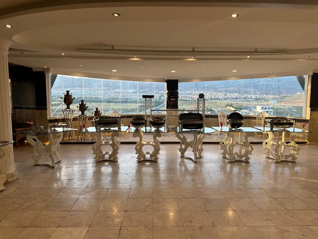 این لوکیشن دارای فضای باز مطبق و همچنین سالن مجزا میباشد. نمای عریض شهر و همچنین قابلیت نورپردازی ازاد ان بسیار امتیاز ارزشمندیست. گنجایش ظرفیت 350 نفری در این لوکیشن باعث قدرت اجرای انواع مراسمات تشریفاتی را به شما خواهد داد.